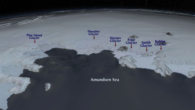 Les glaciers de la mer d’Amundsen contribuent déjà significativement à l’élévation du niveau de la mer. Le Pine Island Glacier, le plus actif de la région, s’enfonce de plus en plus vite dans l’océan : son rythme d’écoulement s’est accéléré de 75% en 40 ans. Le glacier Thwaites, le plus large, a quand à lui commencé à sérieusement accélérer en 2006 après une décennie relativement stable.