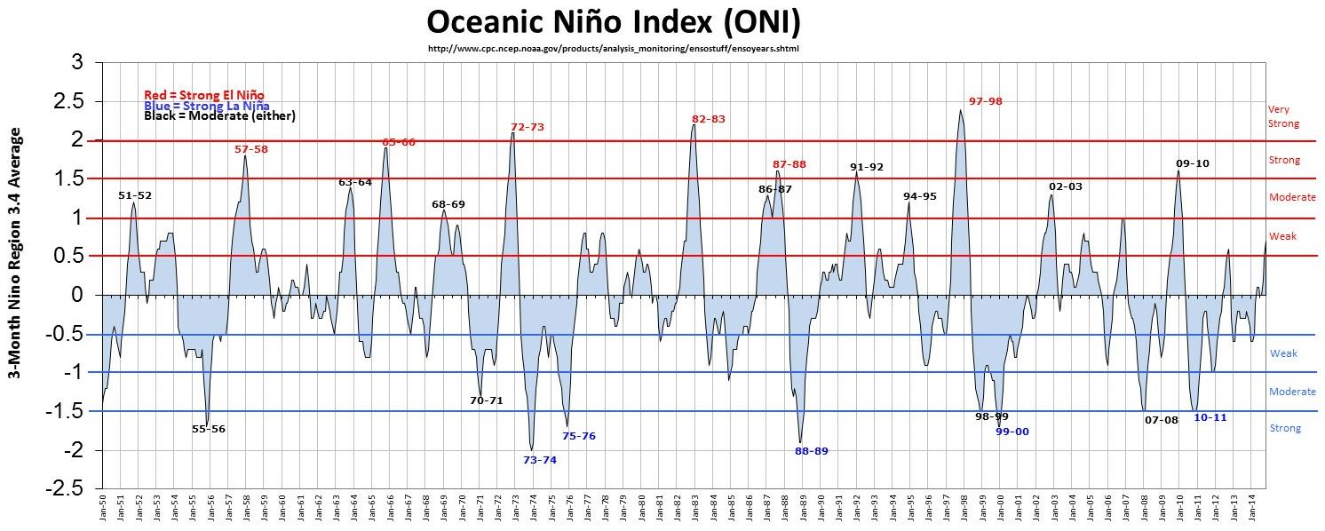 Les années 80 et 90 ont été marquées par deux El Niño extrêmement importants mais depuis 1998, les différents épisodes ont été loin d’atteindre la même intensité. Le plus fort épisode fut celui de 2010, année marquée par un record de chaleur. Les années d’El Niño extrêmes peuvent être plus de 0,3°C plus chaudes en moyenne au niveau global que celles marquées par La Niña. Le record battu en 2014 dans une configuration neutre peut être interprété comme un signe que les gaz à effet de serre commencent à prendre le pas sur la variabilité naturelle, dont la manifestation la plus spectaculaire reste l’oscillation australe. Depuis 1998, on a en revanche vu deux épisodes La Niña de forte intensité, ce qui, selon certaines études, tend à enfouir la chaleur de l’atmosphère dans l’océan. Mais cette chaleur devrait ressortir, sans doute prochainement, à la faveur d’un épisode El Niño.