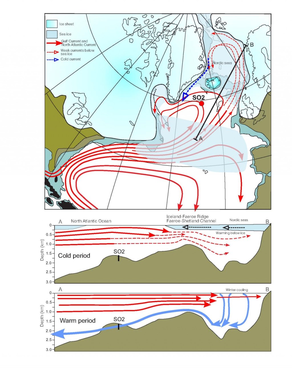 Comme aujourd’hui, la circulation de l’océan Atlantique régissait le transport de chaleur dans cette région. Autrement dit, les courants de surface transportaient la chaleur de l’Atlantique sud et tropical vers l’Atlantique Nord.