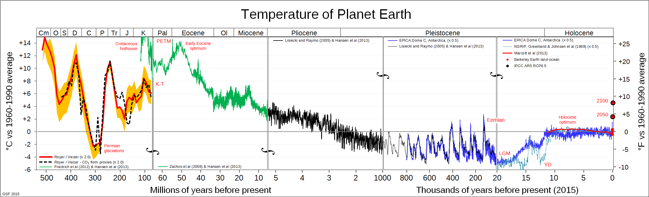 Température de la Terre depuis 540 millions d’années. Source : Wikimedia commons.