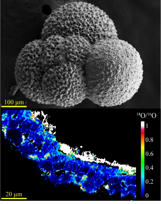 Pour vérifier leur hypothèse, les auteurs de l’étude ont exposé ces minuscules organismes à de hautes températures dans une eau de mer artificielle ne contenant que de l’oxygène 18. Ils ont ensuite suivi l’incorporation d’oxygène 18 dans les coquilles calcaires à l’aide d’un NanoSIMS (Nanoscale secondary ion mass spectrometry), un instrument permettant de réaliser des analyses chimiques à très petite échelle. Les résultats obtenus montrent que la teneur en oxygène 18 des tests de foraminifères peut changer sans laisser de trace visible, remettant de fait en question la fiabilité des proxies. Si les fossiles n’ont pas été préservés, les paléo-températures estimées jusqu’ici ont donc été faussées, selon Sylvain Bernard, chercheur CNRS à l’Institut de minéralogie, de physique des matériaux et de cosmochimie de Paris.