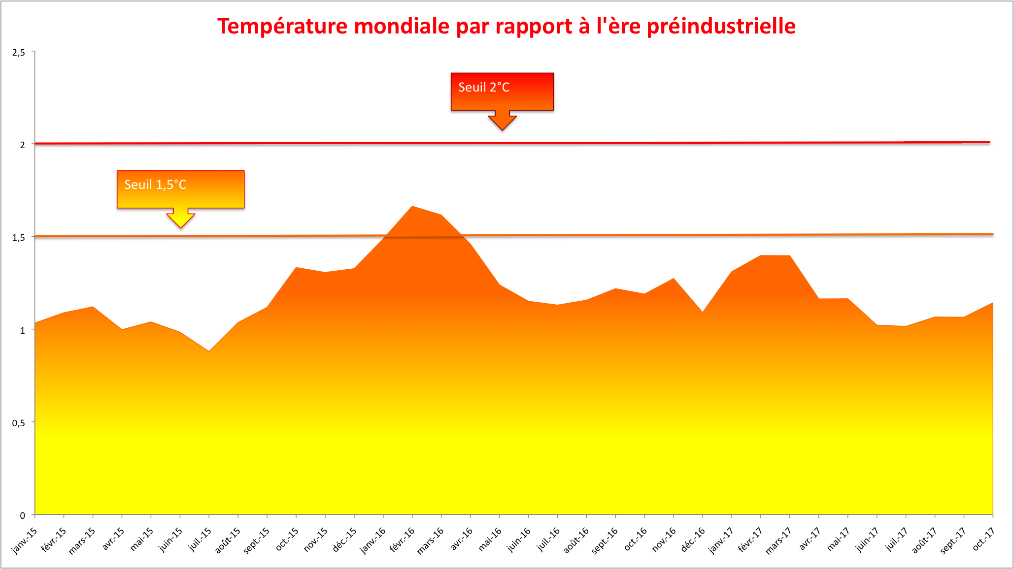 +1,14°C en octobre 2017 par rapport à l’ère préindustrielle