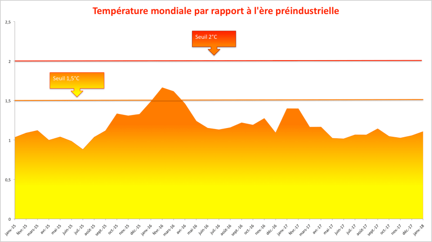 +1,11°C en février 2018 par rapport à l’ère préindustrielle
