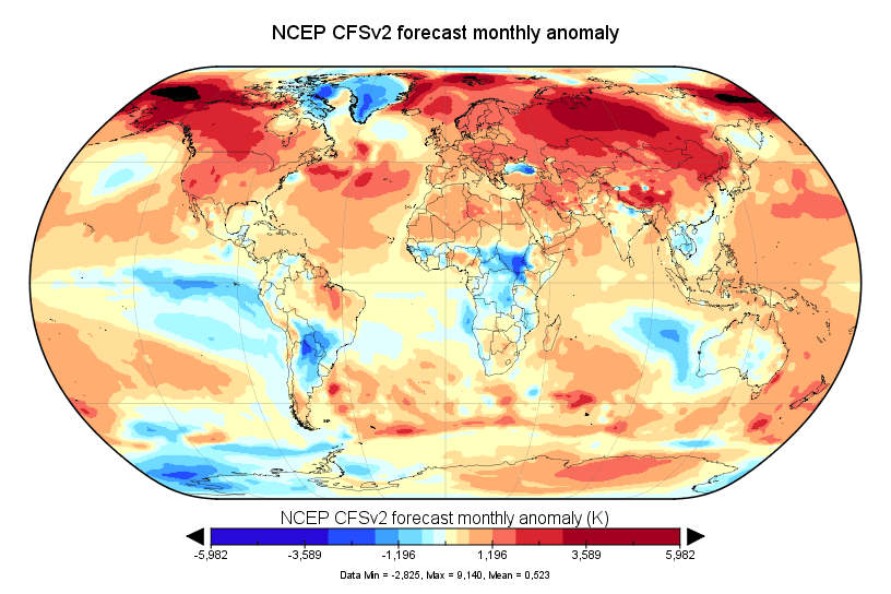 A comparer avec la température observée en septembre : +0,521°C au-dessus de la moyenne 1981-2010, d’après la réanalyse NCEP-NCAR.