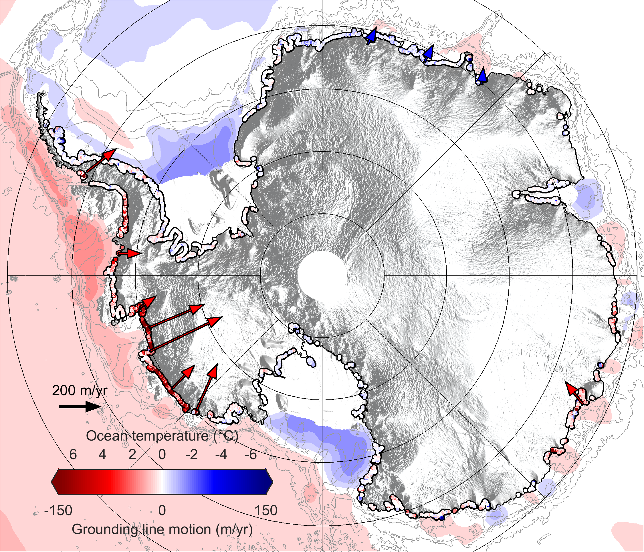 La grande calotte de l’Antarctique est menacée par le réchauffement de l’océan qui attaque les lignes d’échouage sous ses plateformes de glace. Une nouvelle étude en apporte la confirmation sur la base des données du satellite CryoSat-2 de l’Agence spatiale européenne. Une nouvelle étude, publiée aujourd’hui dans Nature Geoscience, montre que l’océan Austral a fondu … Lire la suite Un retrait rapide des lignes d’échouage des glaciers en Antarctique