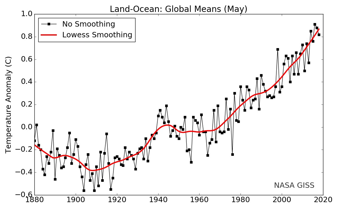 Le mois de mai 2018 a été le quatrième plus chaud depuis le début des relevés de la NASA en 1880.