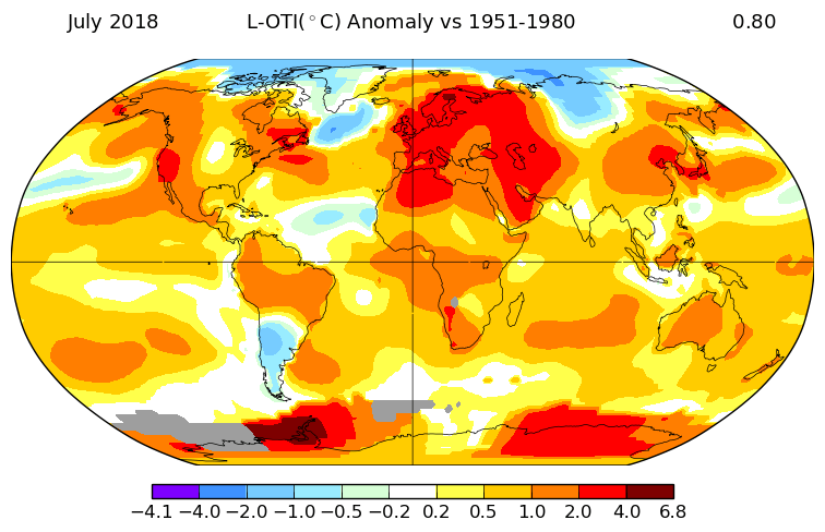 Le mois de juillet 2018 a été le troisième plus chaud depuis le début des relevés de la NASA en 1880.