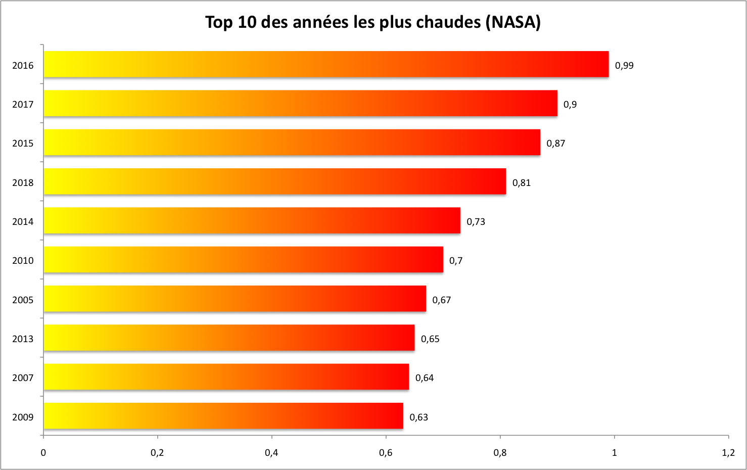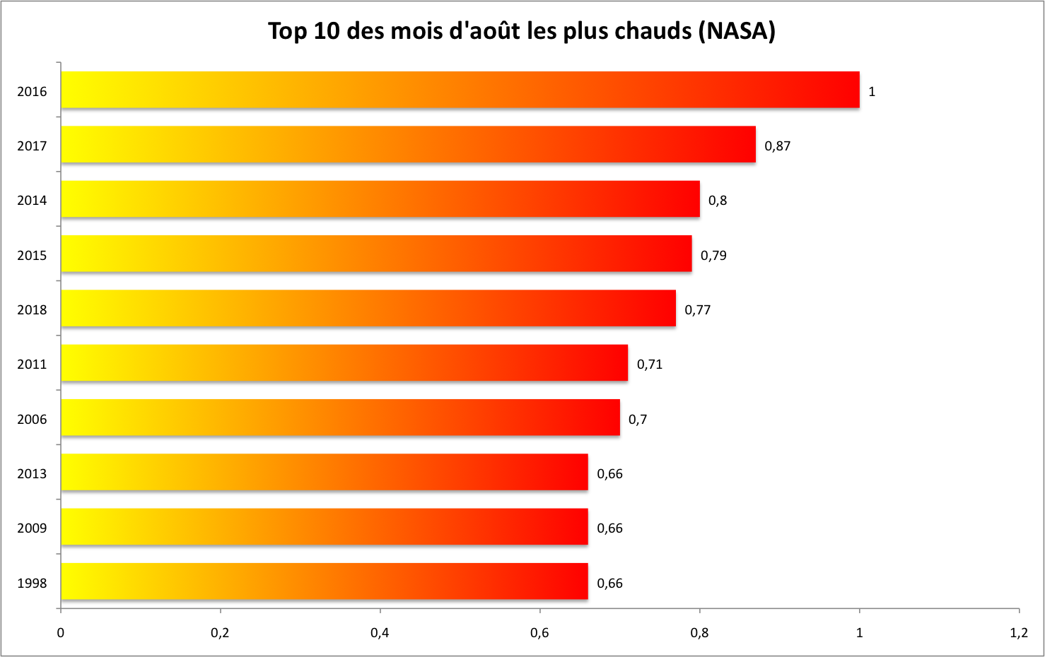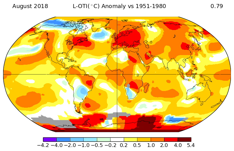 Le mois d’août 2018 a été le cinquième plus chaud depuis le début des relevés de la NASA en 1880.