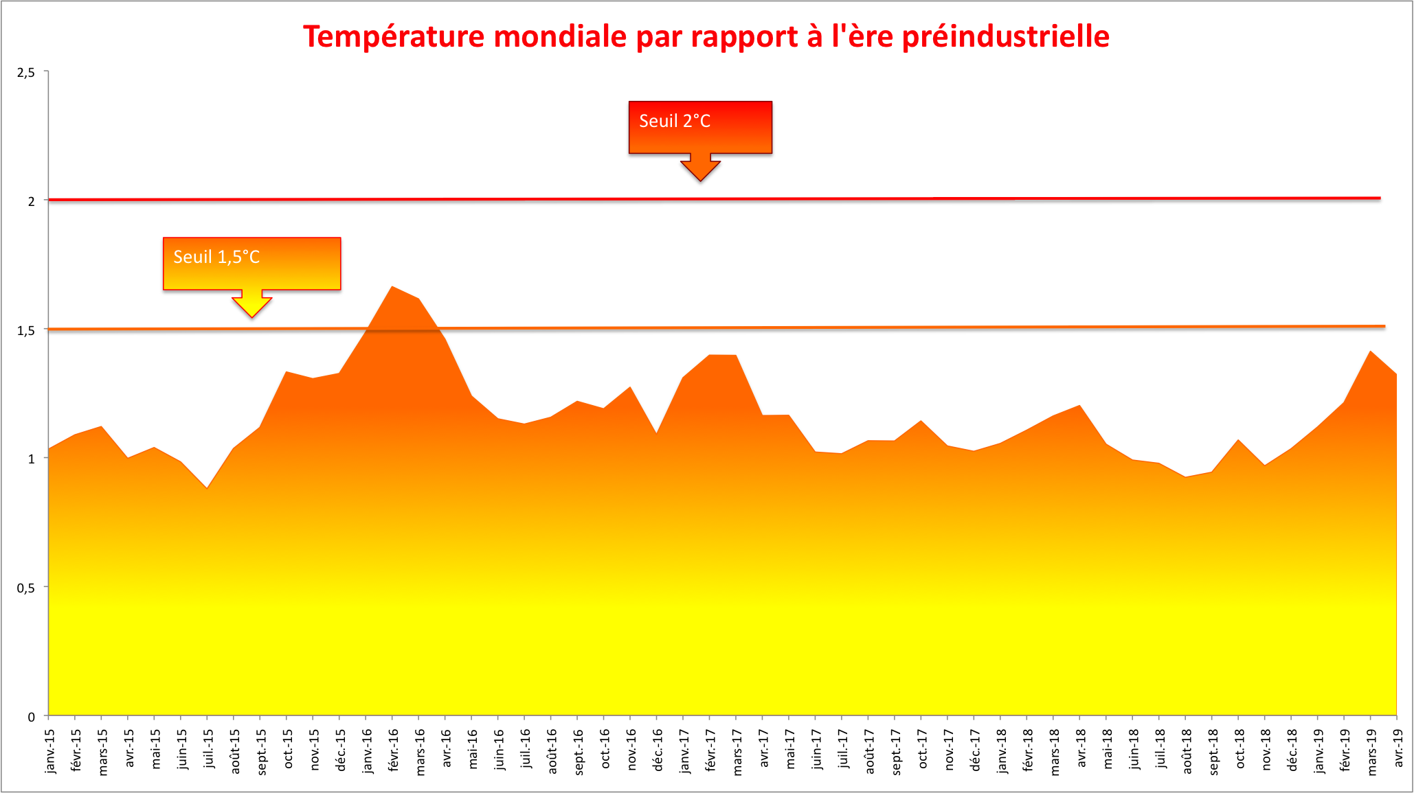 +1,32°C en avril 2019 par rapport à l’ère préindustrielle