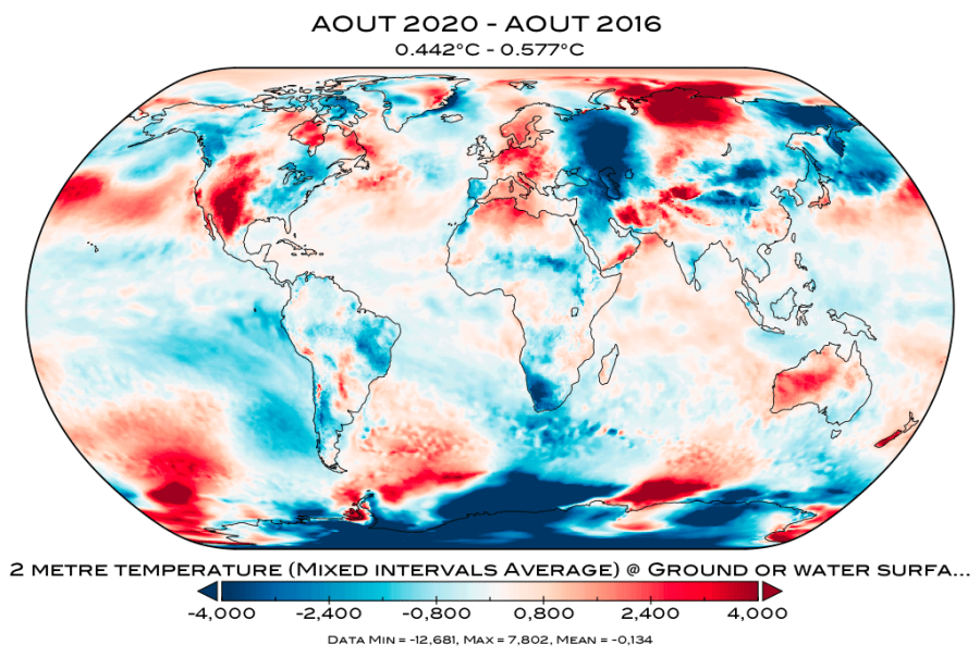 Une réponse à « Température mondiale : 2020 comparée à 2016 »