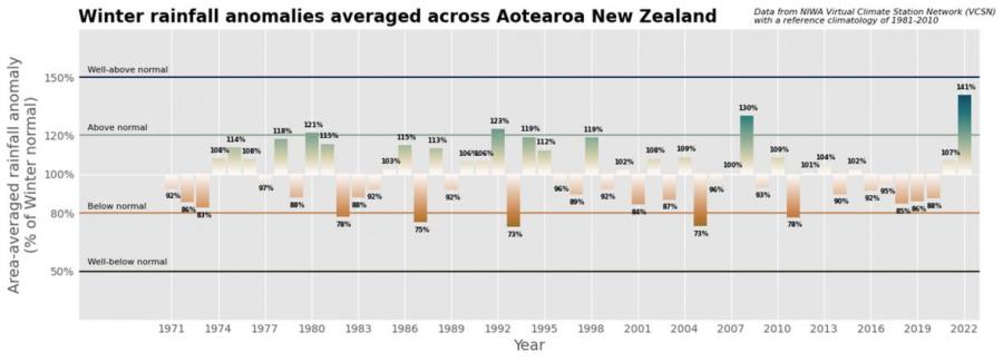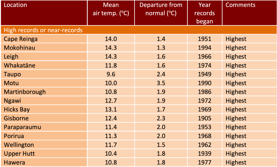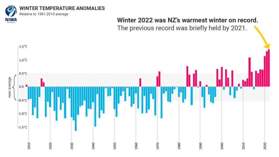 La Nouvelle-Zélande a connu son hiver le plus chaud et le plus humide depuis le début des relevés en 1909. Le record hivernal de chaleur est battu pour la troisième année consécutive.