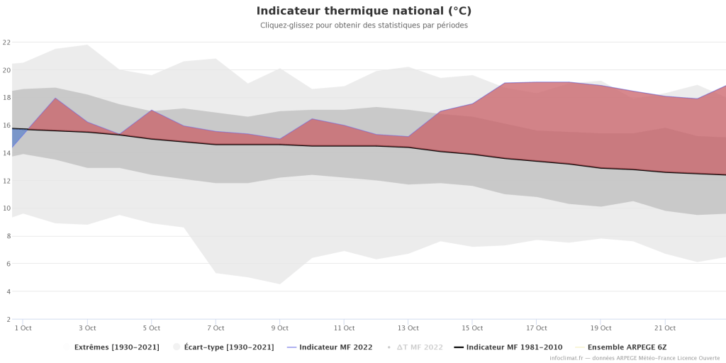 Période du 1er octobre au 23 octobre 2022. Source : Infoclimat