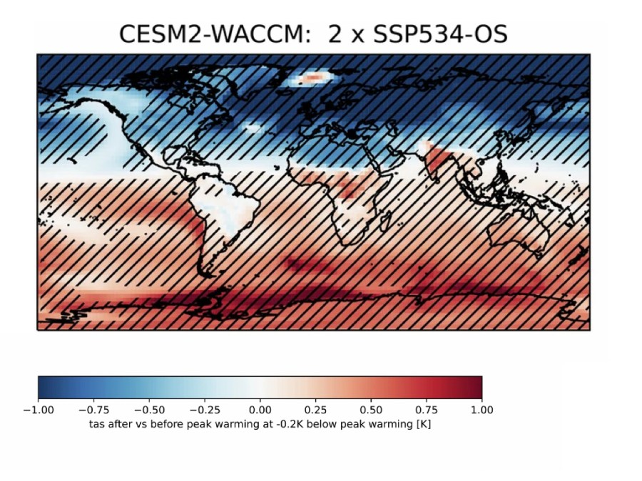 Le niveau de l’océan monterait assez vite sur la côte Atlantique de l’Amérique. L’eau chaude s’accumulerait dans l’hémisphère Sud. Pendant les décennies suivantes les températures dans l’hémisphère Nord baisseraient et celles dans l’hémisphère sud monteraient graduellement. La Scandinavie serait exposée à des températures de -50°C, les îles Britanniques subiraient aussi un froid glacial.