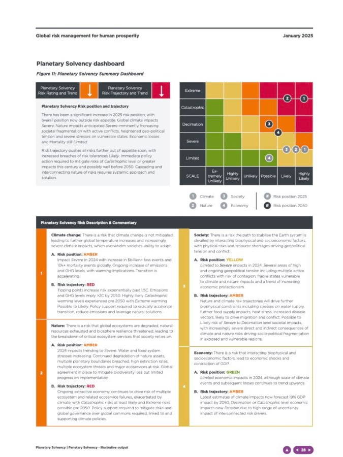 J’ai relu le rapport « Planetary Solvency– finding our balance with nature Global risk management for human prosperity« , publié en janvier 2025 par l’Université d’Exeter.